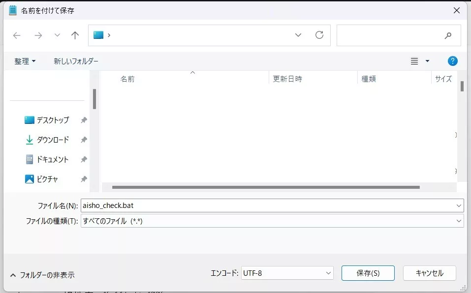 保存されたbatファイルを実行しようとしたもののできませんでした。正確には一瞬開くのですがすぐに消えるようなイメージです。これではいけません。