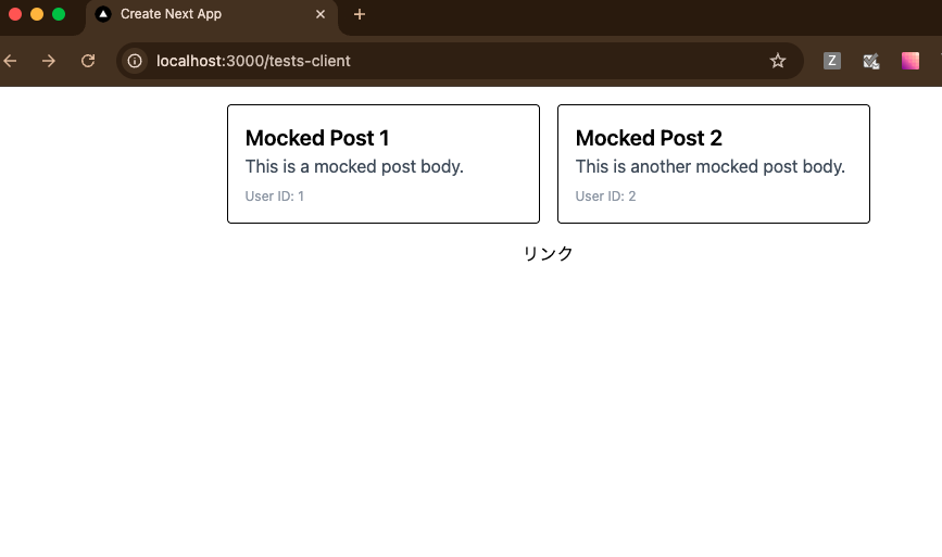 今回は、MSW という APIをモックするためのライブラリを導入して、実際にデータが返る状態でコンポーネントの単体テストを作成します。